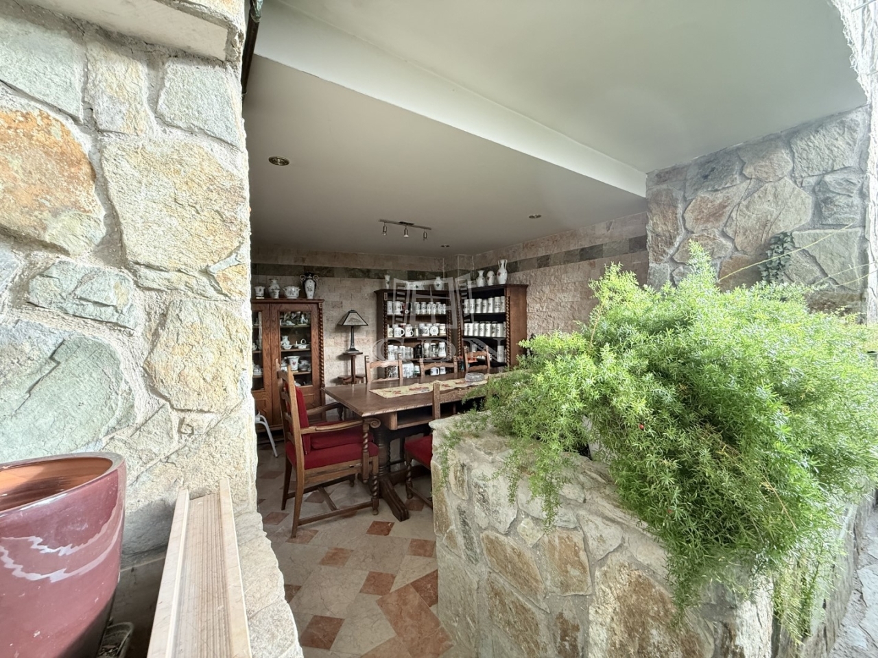 A mediterrán stílusú épületnek 2 bejárata van nagy terasszal. A felső teraszról pompás kilátással a kertre.