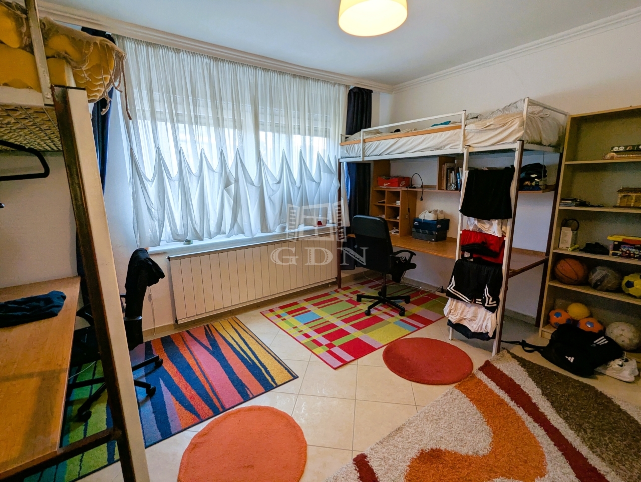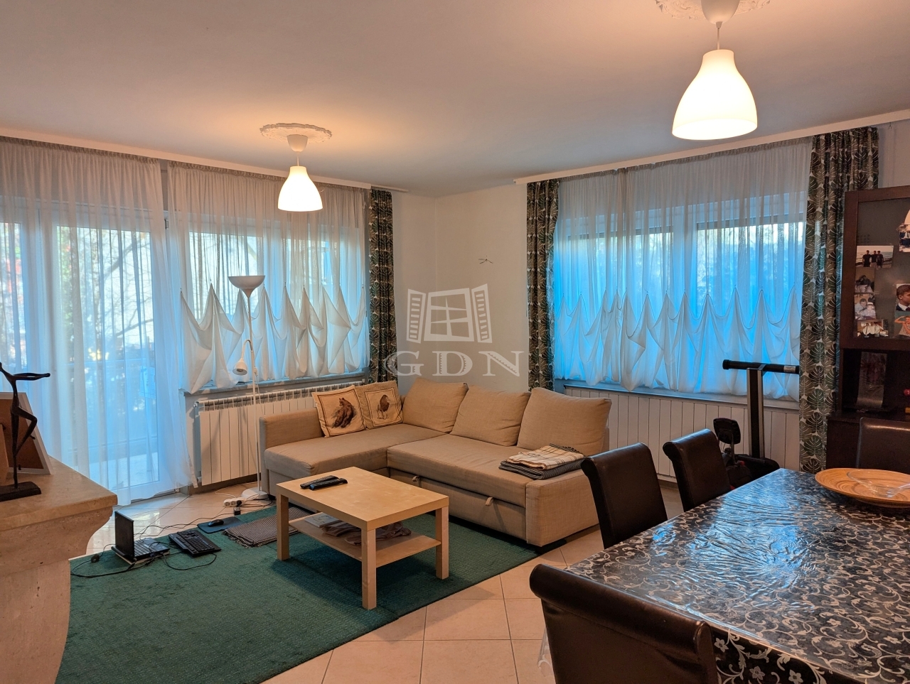 Csendes, zöld udvarra néző nappali és hálószoba