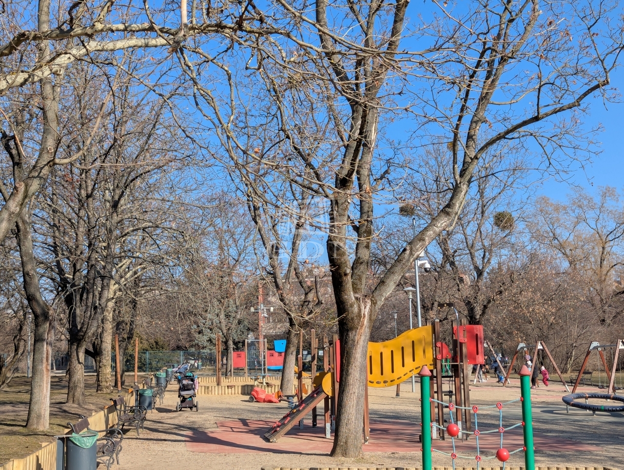 Közvetlen közelben park nagy játszótérrel és futókörrel.