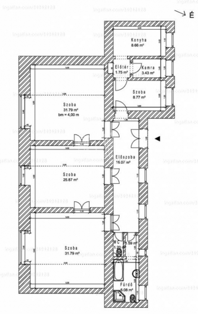 • Összesen 5 szoba: 3 utcai, 1 nagy udvari és +1 kisebb udvarra néző szoba.