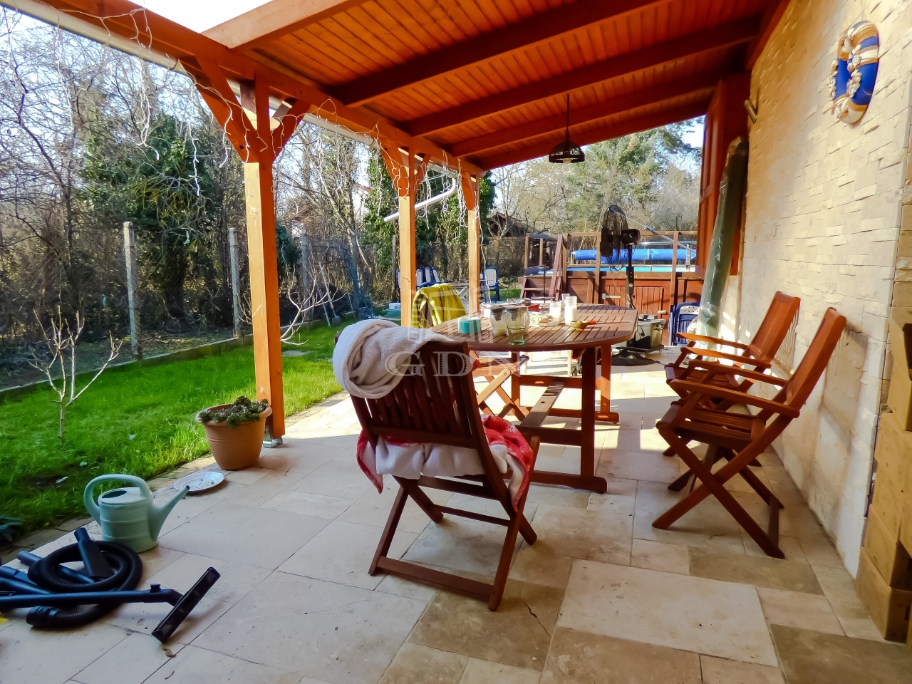 A rendezett, karbantatott kert hátsó részében egy cca. 12 nm-es tároló és egy 6*4 méteres fűthető medence kapott helyet, kikapcsolódásra, pihenésre, baráti összejövetelekre kiválóan alkalmas.