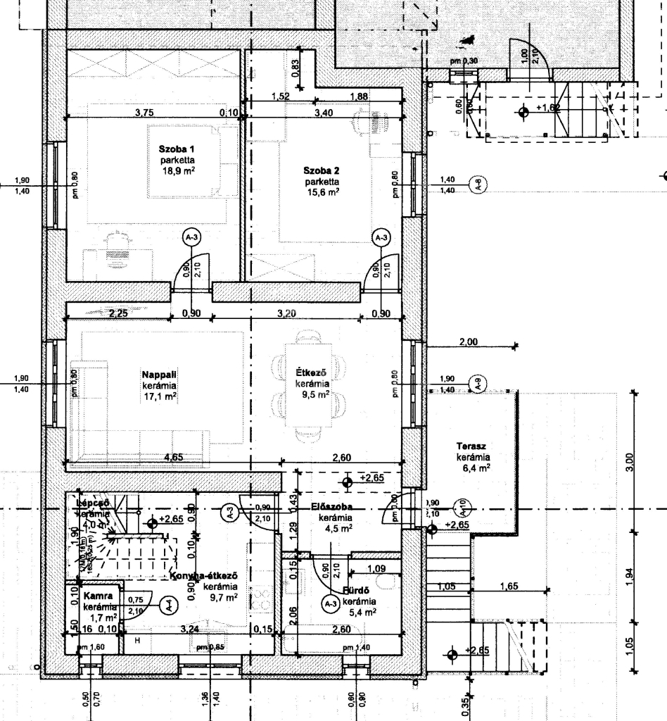 - A nyílászárók 3 rétegű üvegezéssel, fehér színű műanyagok bukó, nyíló, toló kivitelben