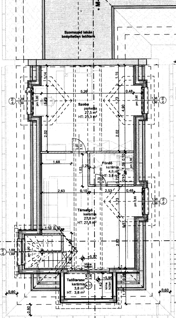 Itt a tervezett állapotban kialakításra került 55 m2-en egy SZÜLŐI HÁLÓSZOBA, fürdőszobával, TÁRSALGÓ szobával, és ERKÉLLYEL.
