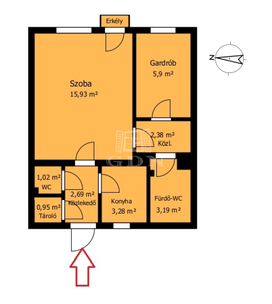 | 34 m2Alapterület | 1 Szoba |