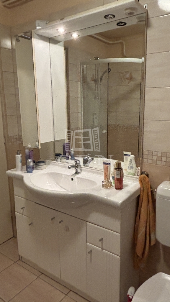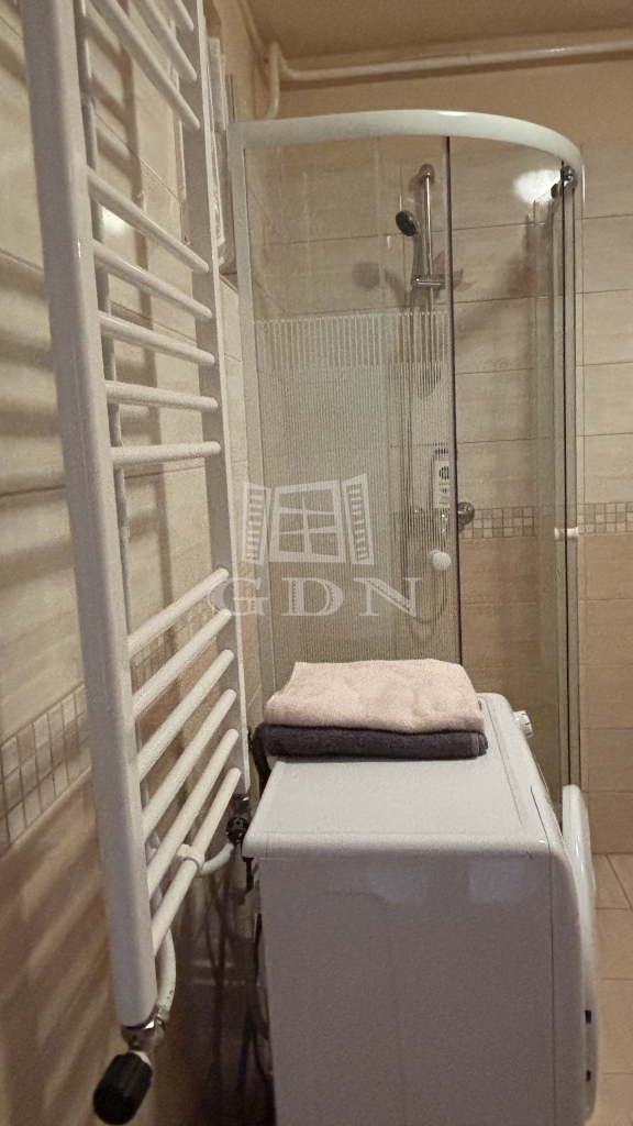 Fürdőszoba, tusolóval, wc, mosdó, törölköző szárító