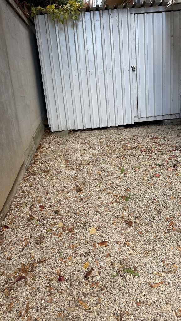 Udvari tároló, szaletli, kertben mosott kavics és virágok