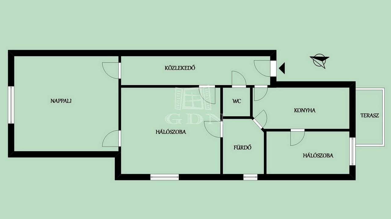 -Külön nyíló szobák, jól átgondolt alaprajz
