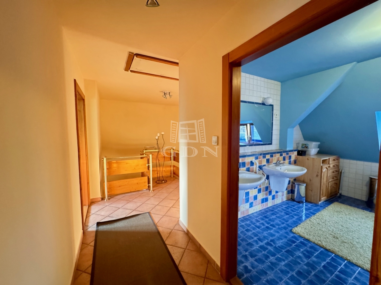 Jelenleg az emeleten két szoba összenyírásra került, ami igény szerint kis átalakítással két külön szobává alakítható vissza, ahogyan az alaprajzon is látható.