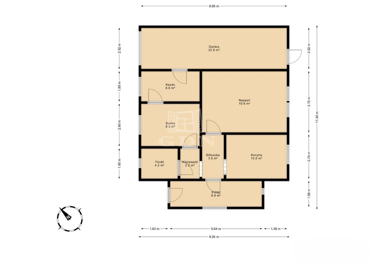 Garázs és tárolók mellett egy külön bejáratú, 53 m²-es lakrész került kialakításra nappali + félszoba, étkezős konyha és fürdő elrendezéssel.