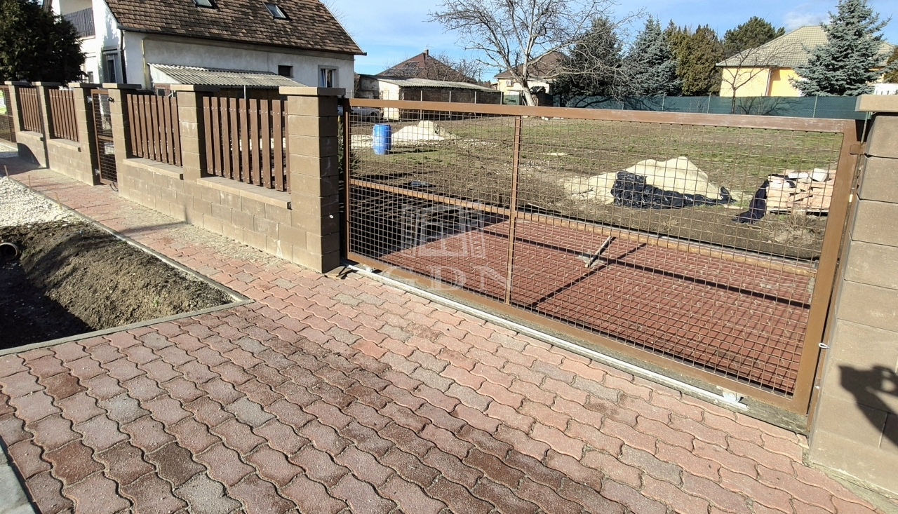 A telek sík, négyszögletű, széles utcafronttal,újonnan épült utcafronti kerítéssel rendelkezik, ahol két kapubeálló is rendelkezésre áll autó beállására.