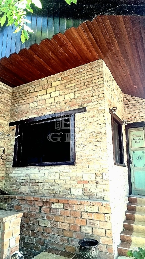 A házhoz kapcsolódik egy hangulatos, rusztikus stílusú, fedett terasz, amely egyedi elképzelések alapján, gondos kivitelezéssel készült.
