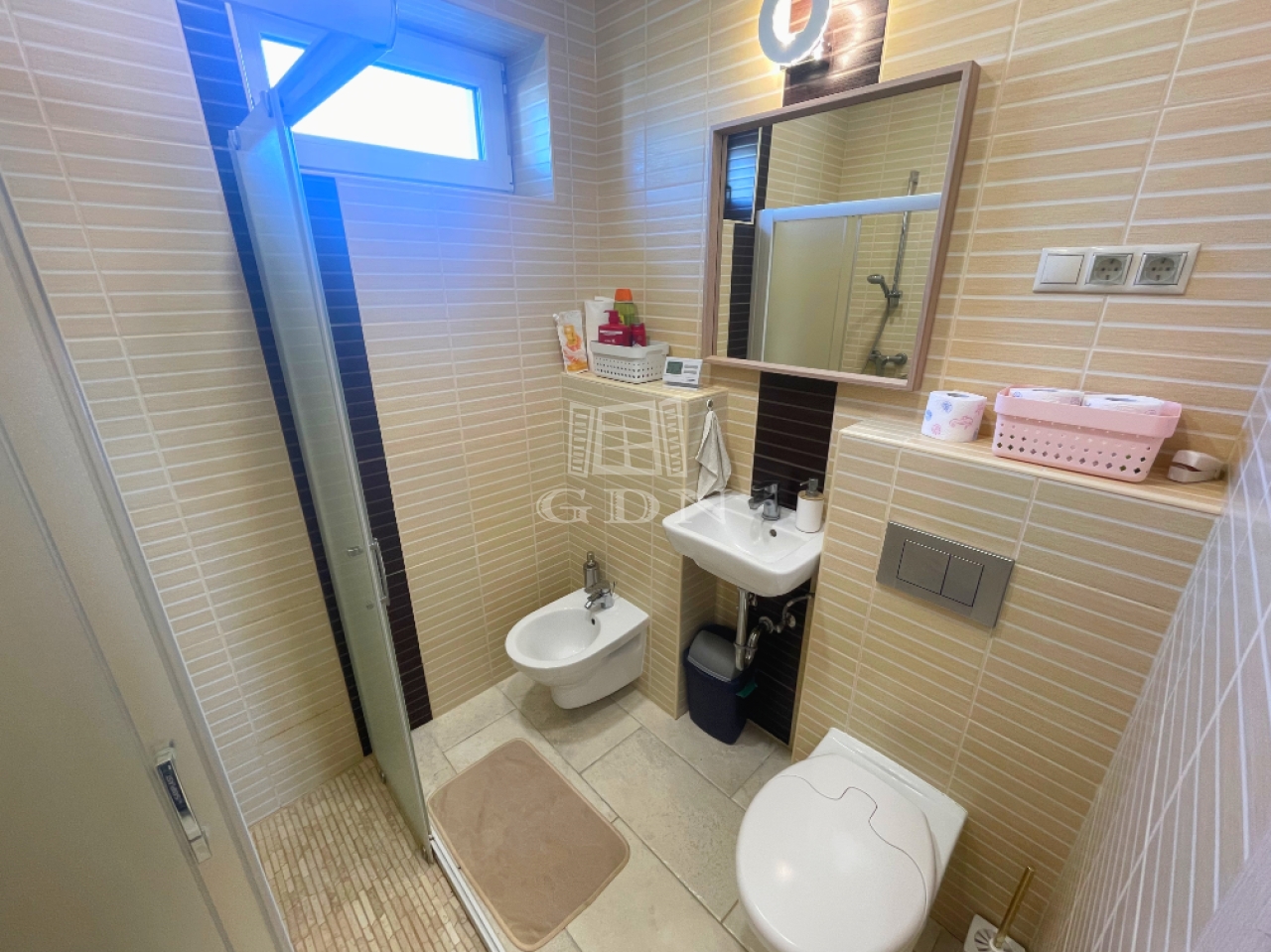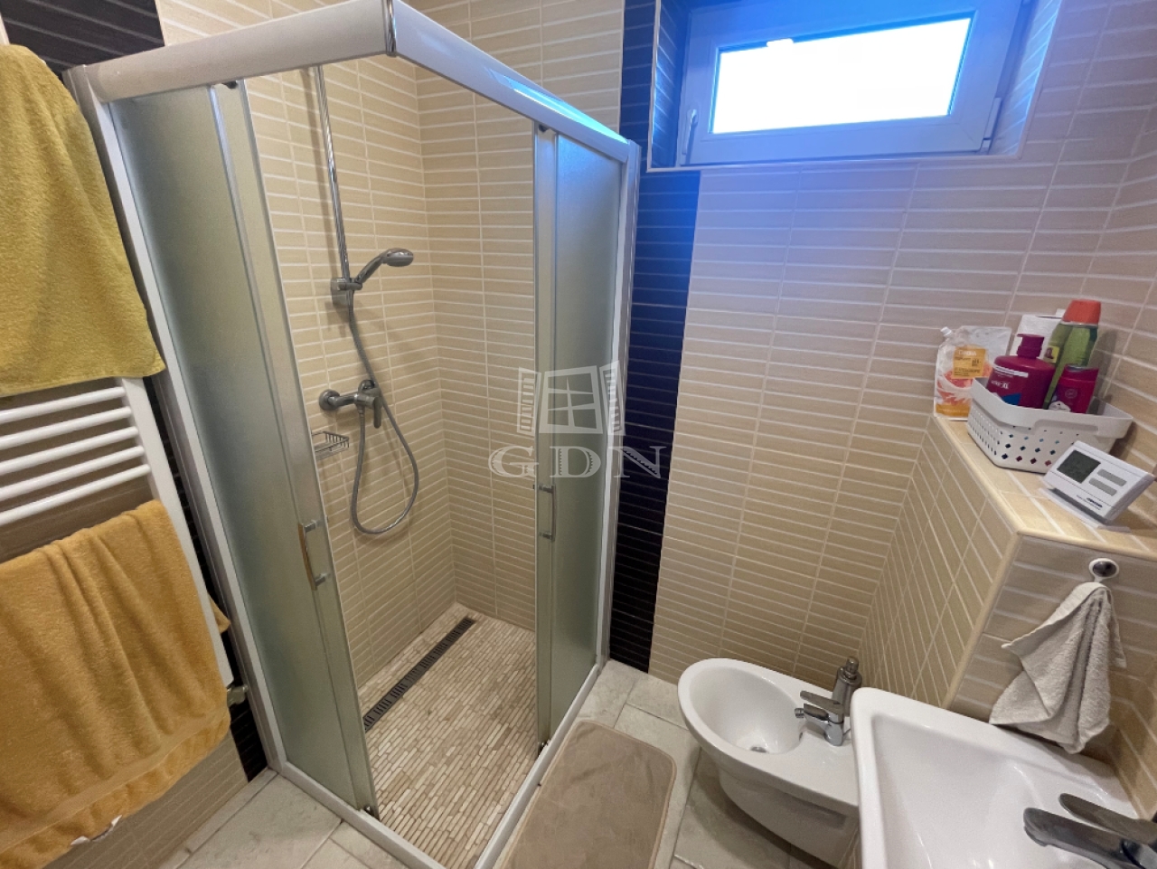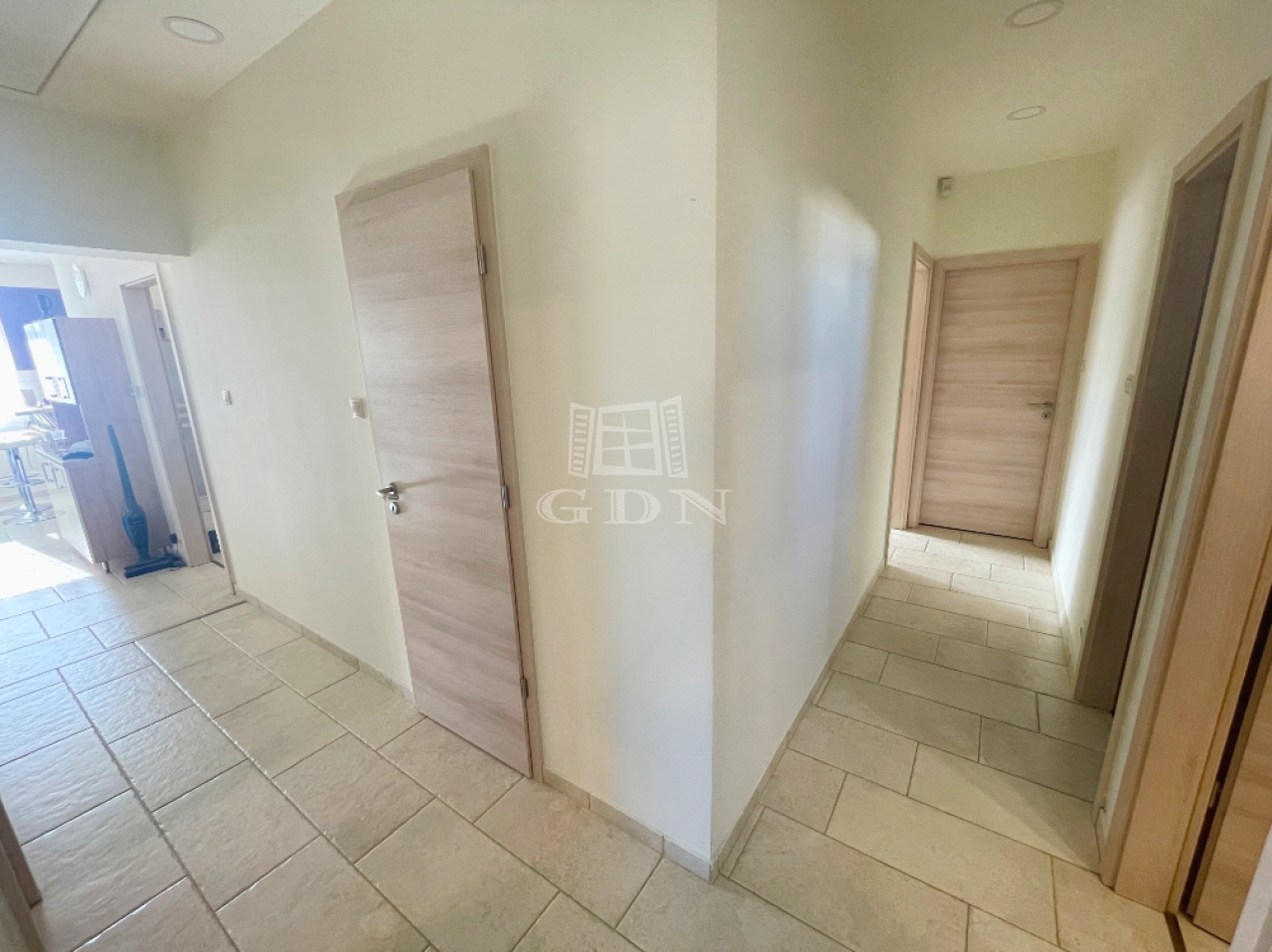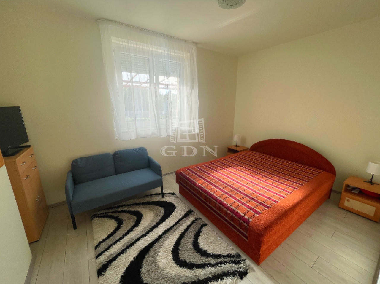 Szombathely herényi városrészén, magánútról megközelíthető 2017-ben, magas műszaki tartalommal épült családi ház várja új lakóit. Különlegessége, hogy akár a nagyiék is kötözhetnek. Külön nagy teraszról megközelíthető nappali-konyha, hálószoba, fürdő, wc elrendezésű, 38 m2-es kis ház külön megvásárolható. A hirdetésben szereplő ház 111 m2 nagyságú, három hálószobával rendelkezik. Kettő gardrób is kapcsolódik a szobákhoz. Nappalija tágas, nyugati tájolásának köszönhetően rendkívül világos. Konyhája kényelmét kamra szolgálja. Nagy méretű háztartási helyiségben található a lakás gépészete. A ház Silka falazó elemekből épült. Homlokzatára 2x12.5 cm multipor szigetelés, az aljzatba 3x5 cm lépésálló szigetelés, a födémre 2x20 cm szigetelés került. Energetikai szempontból kiváló az épület. Nyílászárói három rétegű üvegezéssel ellátott műanyag ablakok, alumínium redőnyökkel, szúnyoghálóval felszereltek. A tető Terran betoncseréppel fedett. A tetőre 15 kw teljesítményű napelemet szereltek, amely az ingatlan teljes villamos energia igényén kívül, a fűtést is ellátja. A helyiségek klímája külön termosztátokkal szabályozhatók. A hálószobákban falfűtés, a nappaliba fal -és padlófűtés, a fürdőkbe fal- és padlófűtésen kívül törölköző szárítós radiátorok kerültek. Az ingatlan dupla komfortos, tusolós és kádas fürdőszobáiban elszívók segítik a páramentesítést. A ház 36 m2-es fedett terasszal kapcsolódik a kerthez.