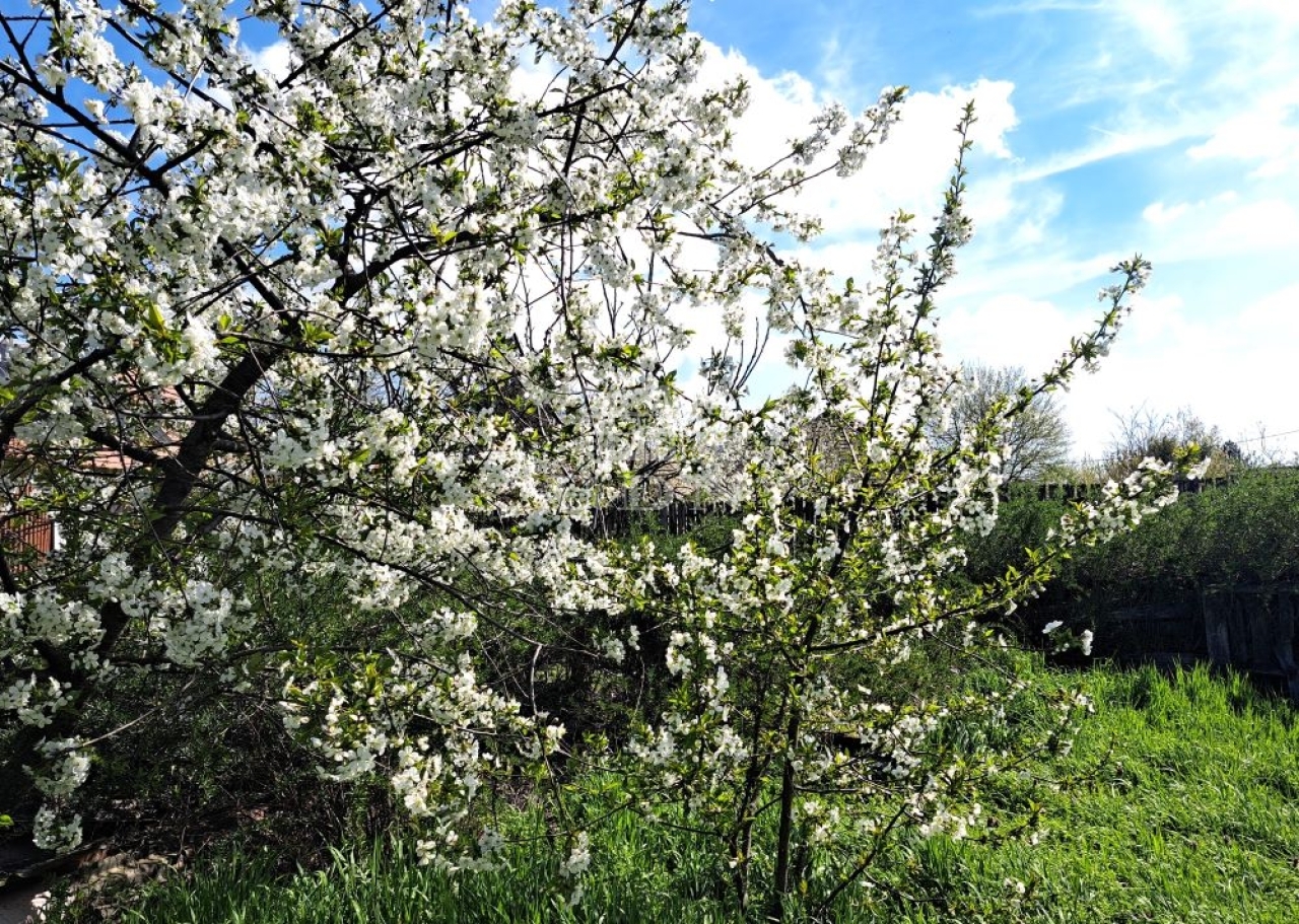 A lakóház egy közel 1300 m2 területű, összközműves, füvesített telken fekszik, melyen a gyümölcsfák mellett kinti tároló, valamint egy körülbelül 20 m2 nagyságú pince is helyet kapott.