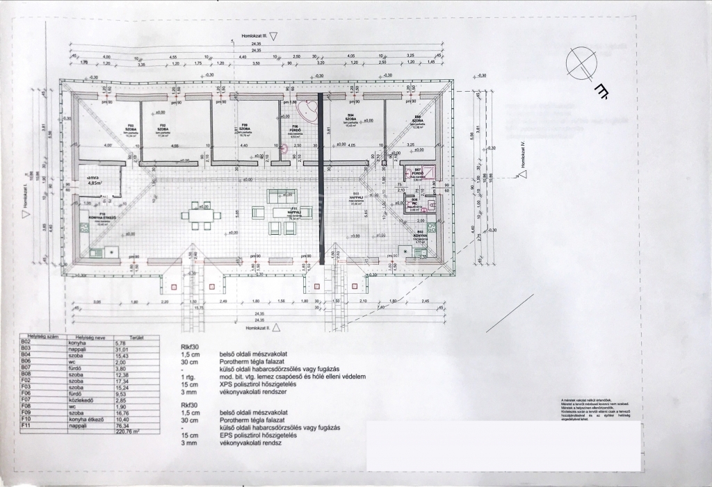 A falazat ytong 30-as, műanyag thermo nyílászárókkal. A homlokzatok 10cm-es dryvit , a padló 10 cm-es lépésálló szigeteléssel lett kialakítva. A tetőn 20cm kőzetgyapot szigetelés van, a héjazat antracit betoncserép.