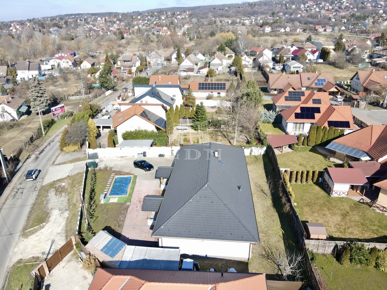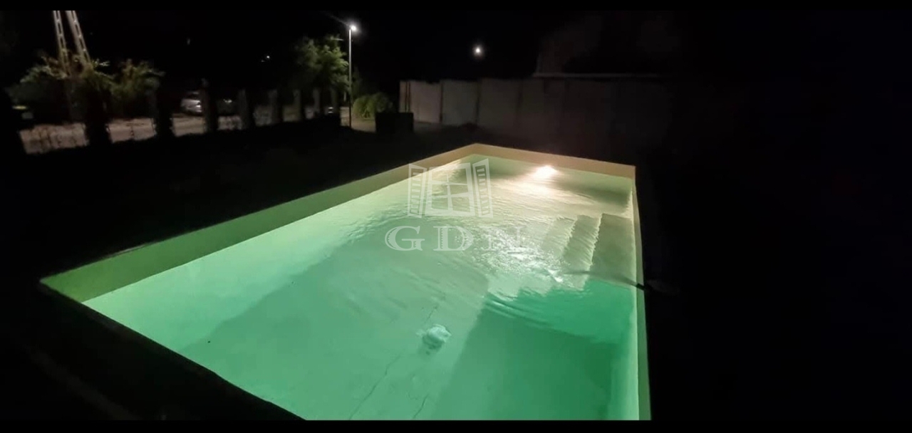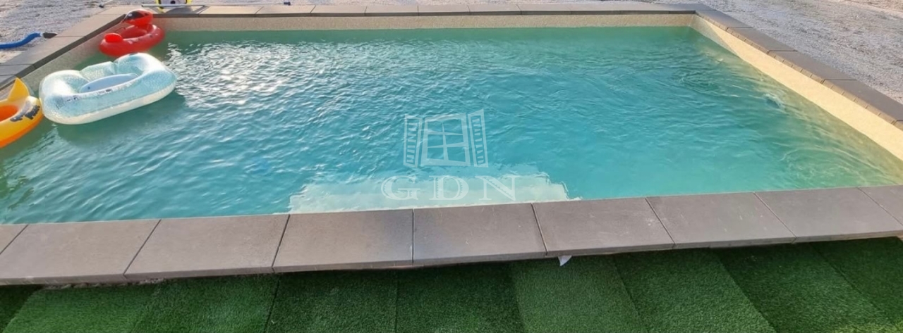Az udvaron zsalukőből készült fóliás medencét találunk, hőszivattyús fűtéssel.
