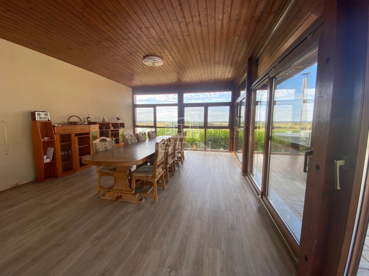 - 100 nm nagyságú téglaépítésű ház. Helyiségei: nappali (29 nm), konyha (4 nm), fürdő (6 nm), szoba (11 nm), étkező-társalgó ( 50 nm).
