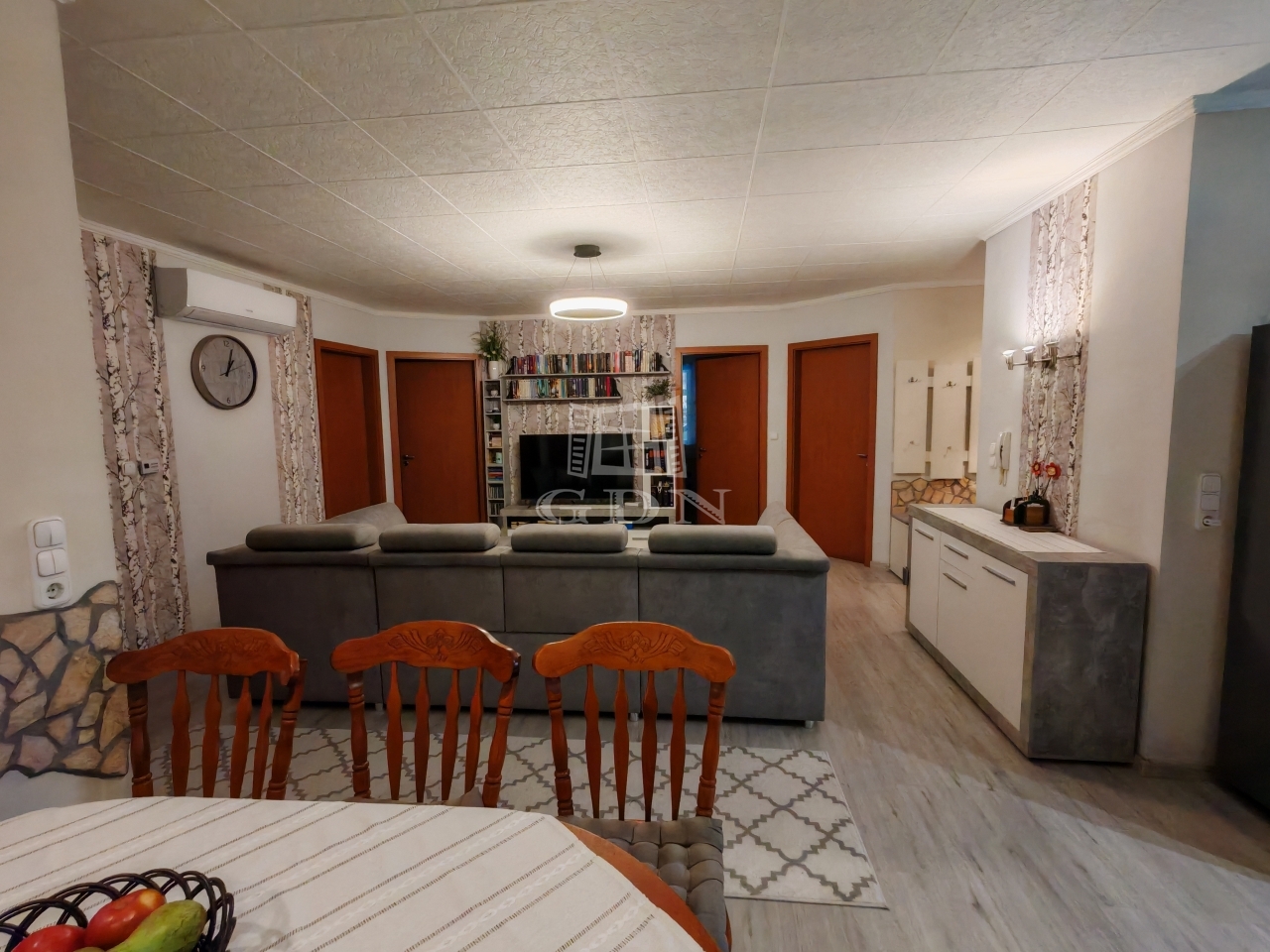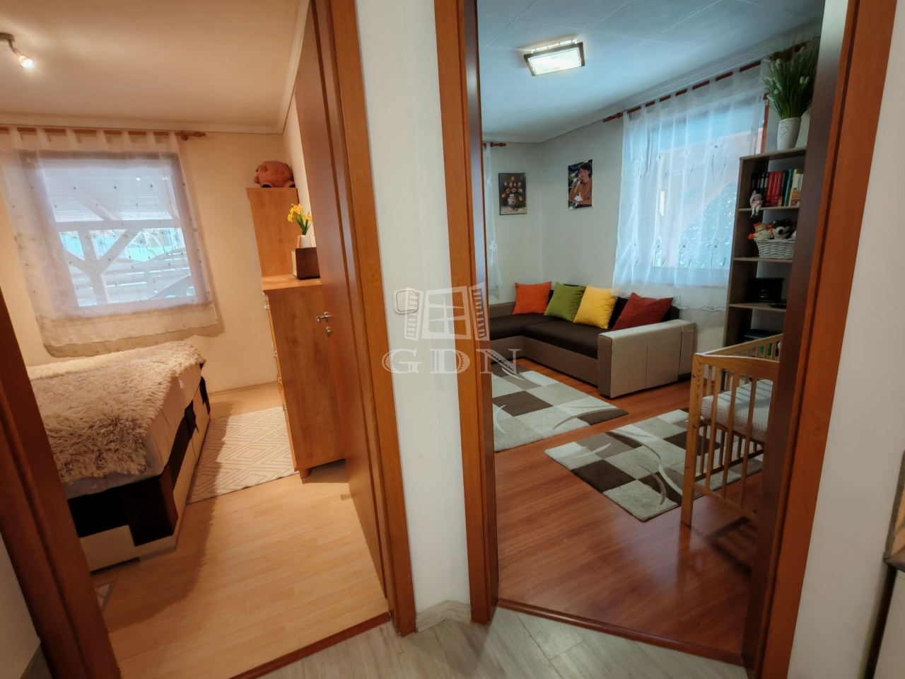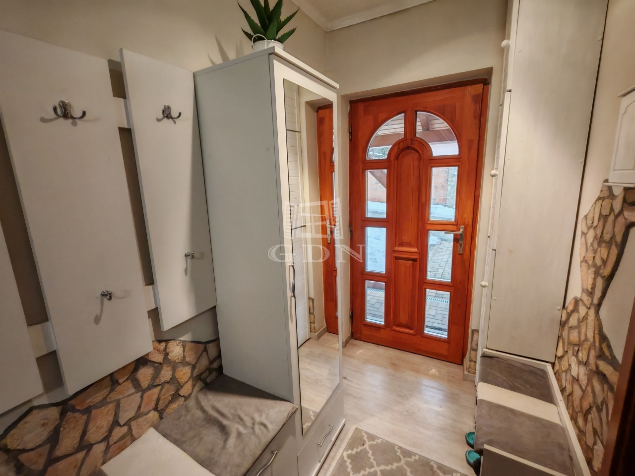 Eladó kertkapcsolatos, olcsó fenntartású lakás Pécel–Kopaszhegyen.