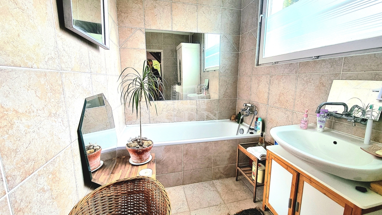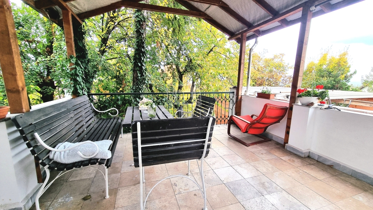 A 245 nm-es hangulatos kertben kertitó épült, a házhoz fedett terasz tartozik.