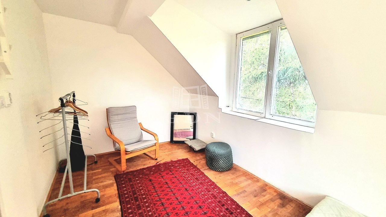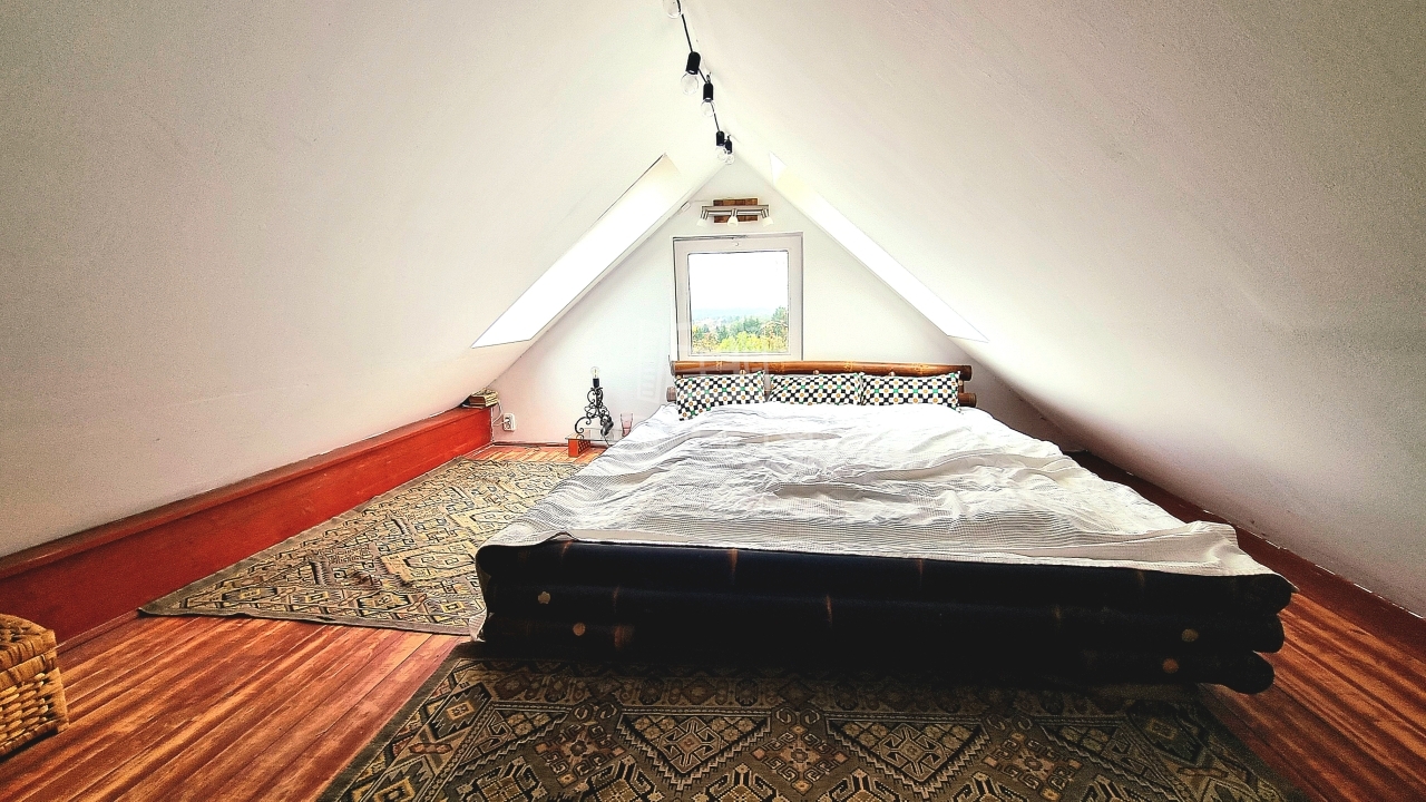 A legfelső szinten egy hangulatos kicsi hálószoba helyezkedik el.