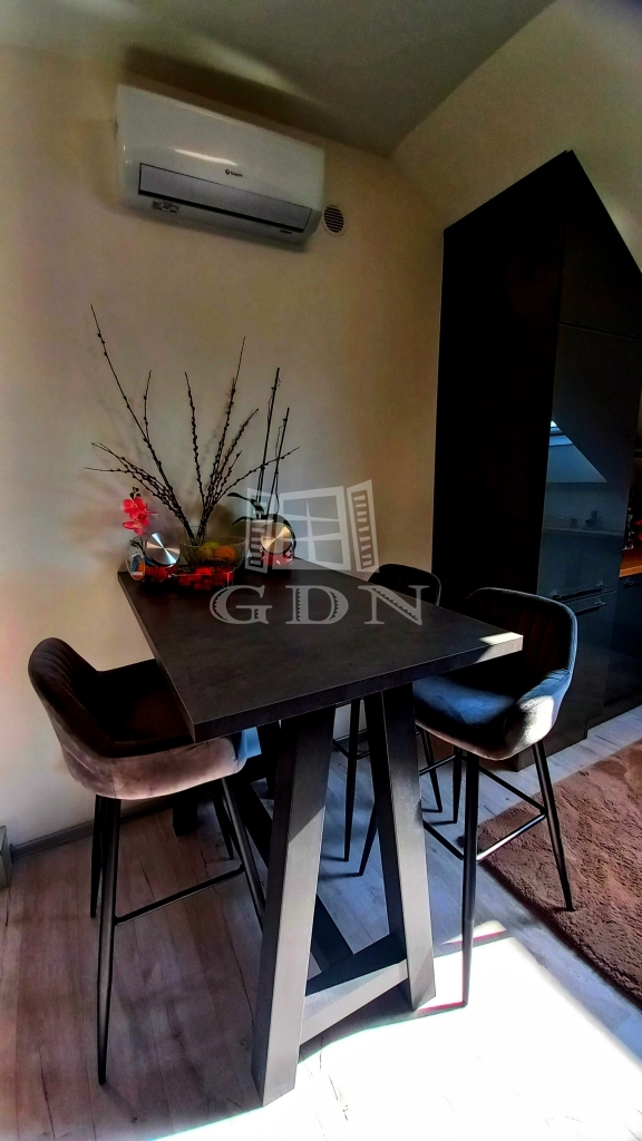 Továbbá a konyha-étkező, és az élhető méretű hálószoba mellett egy fürdőkádas fürdőszoba. A gázfűtés mellett mindkét szobában hűtő-fűtő klíma szolgálja a nagyobb komfortérzetet.