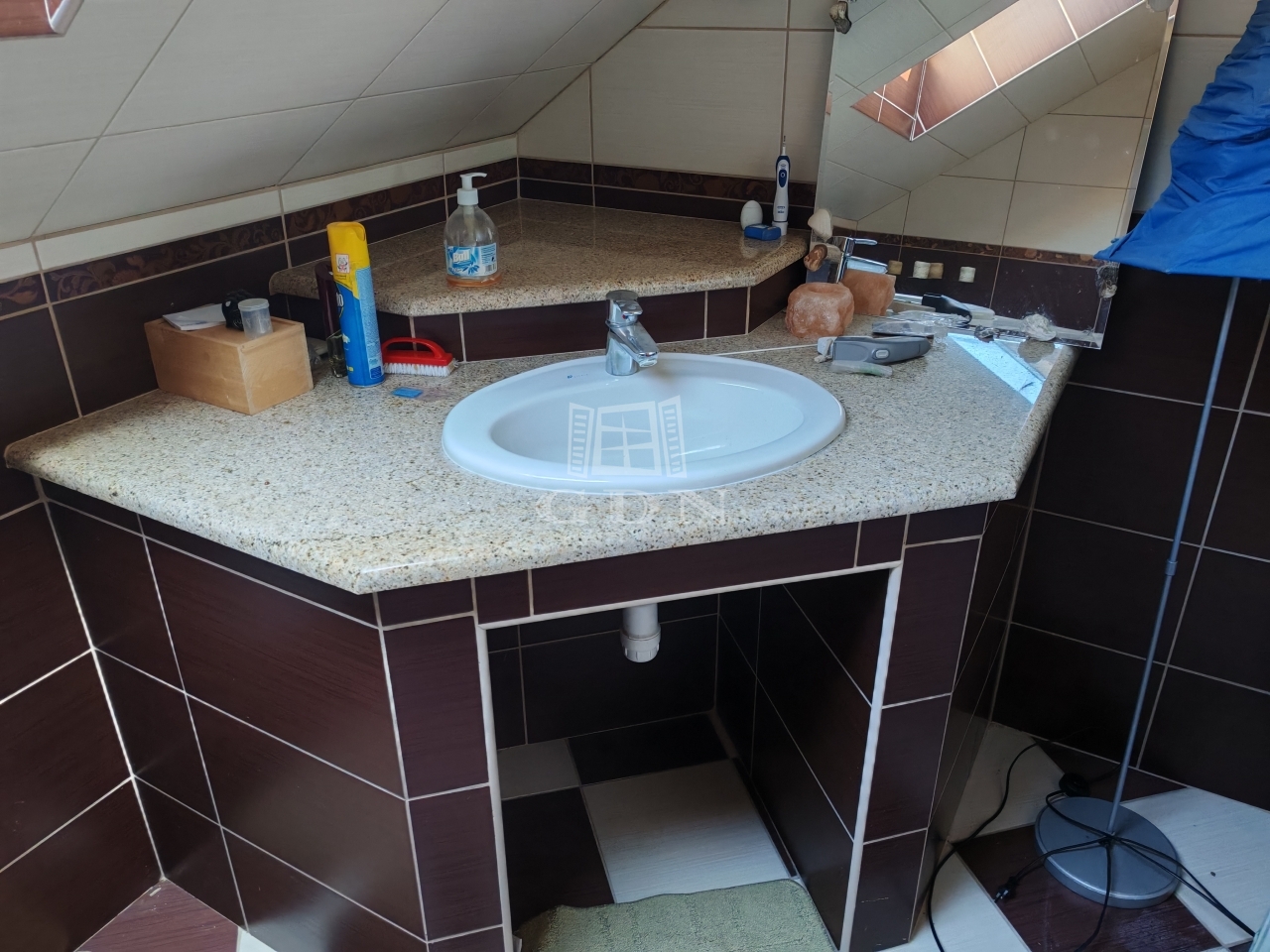 A helyiségek járólapokkal és laminált padlókkal fedettetek. A tetőtéri és a jól elhelyezett ablakoknak köszönhetően az ingatlant körbejárja a napfény, nincs sötét zug.