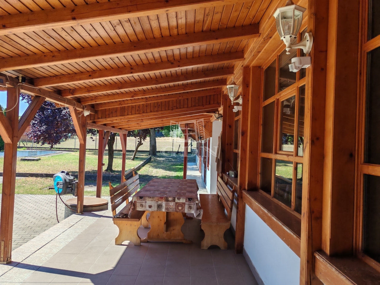 Mindkét lakrészből kényelmesen megközelíthető a szépen kialakított fedett terasz.