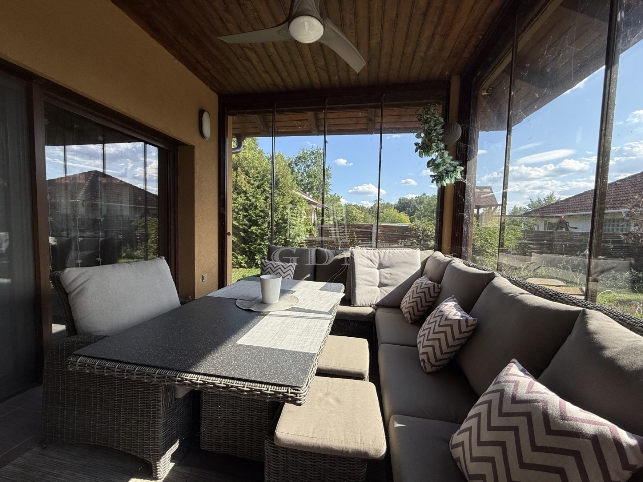 A ház tágas, világos, körbe napozott, minőségi anyagokból készült. A burkolatokat tekintve a szobákban magas minőségű laminált padló, a nappaliban a közlekedőben, valamint a konyhában és a vizes helyiségekben jó minőségű járólap található. A nyílászárók műanyagból készültek, 3 rétegű hőszigetelt üvegezéssel, rajtuk elektromos redőny és szúnyogháló található.
