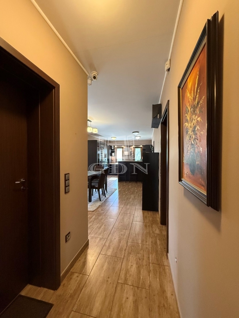 A házba belépve tágas előszoba fogad, majd jobbra található a dolgozószoba, fürdőszoba, és a háztartási / mosókonyha helyiség. Balra fordulva 2 szoba, fürdőszoba , gardrób. Az előszobából egyenesen haladva tovább balra a kazánhelyiség (kijárattal a kertbe), jobbra pedig a „szülői” hálószoba saját gardróbbal és fürdőszobával, szemben a tágas nappali ( egyedi kandallóval) konyha –étkező rész, ( kamrával mely nem csak kamra hanem egyfajta teakonyha is) következik, kijárattal a fedett teraszra. A terasz fedett és üvegezett, a külső homlokzat színével azonos elektromos árnyékoló rendszerrel rendelkezik, így kényelmesen használható minden évszakban.