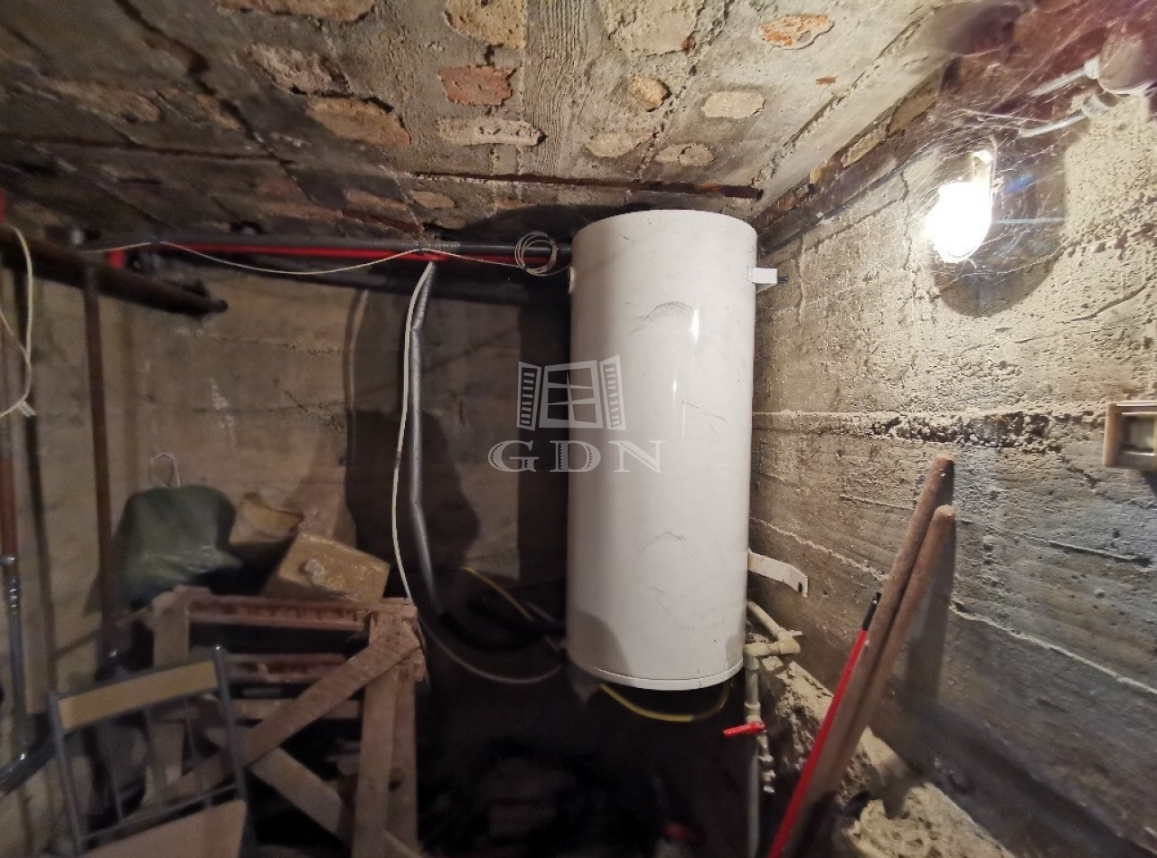A ház teljesen alá van pincézve, zöldséges pince, tároló, fatároló és egy kb. 20 nm-es leválasztott helyiségben kapott helyet a gázkazán, ami jelenleg a ház fűtését biztosítja radiátoros hőleadással. A melegvíz ellátás villanybojlerrel történik.