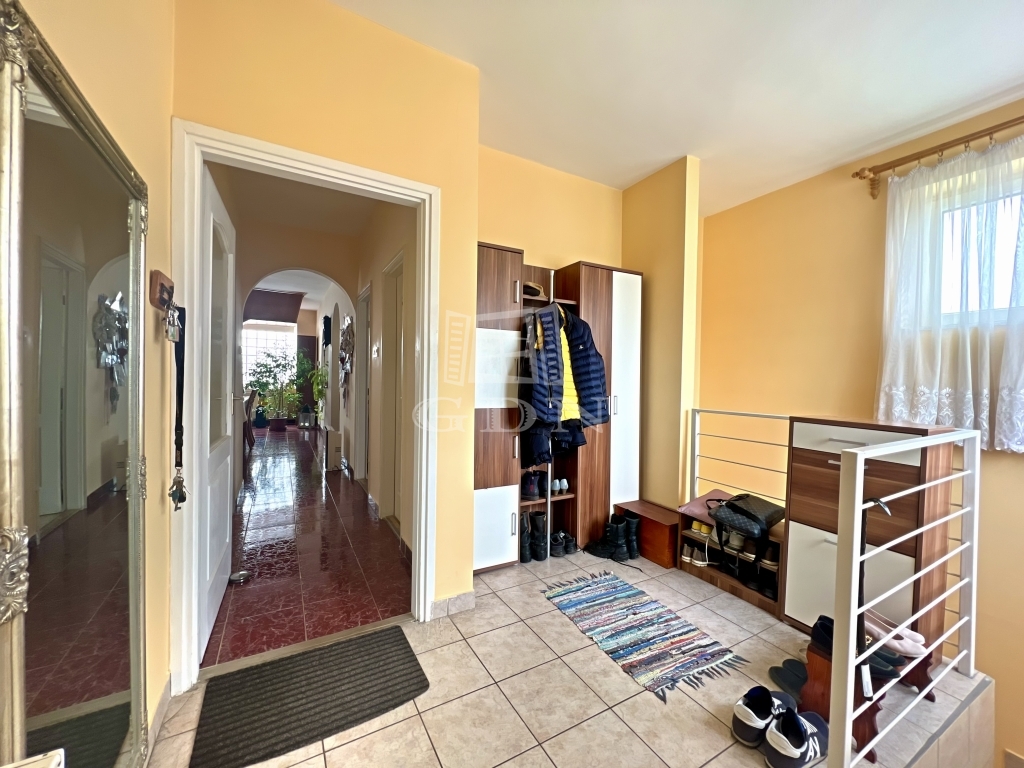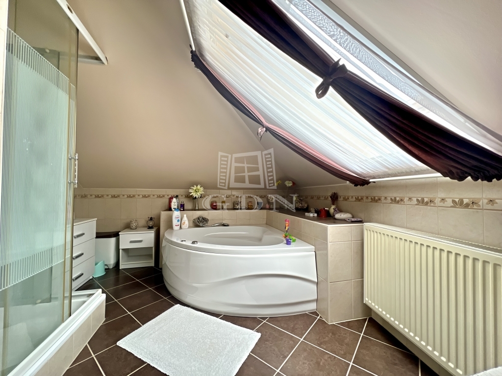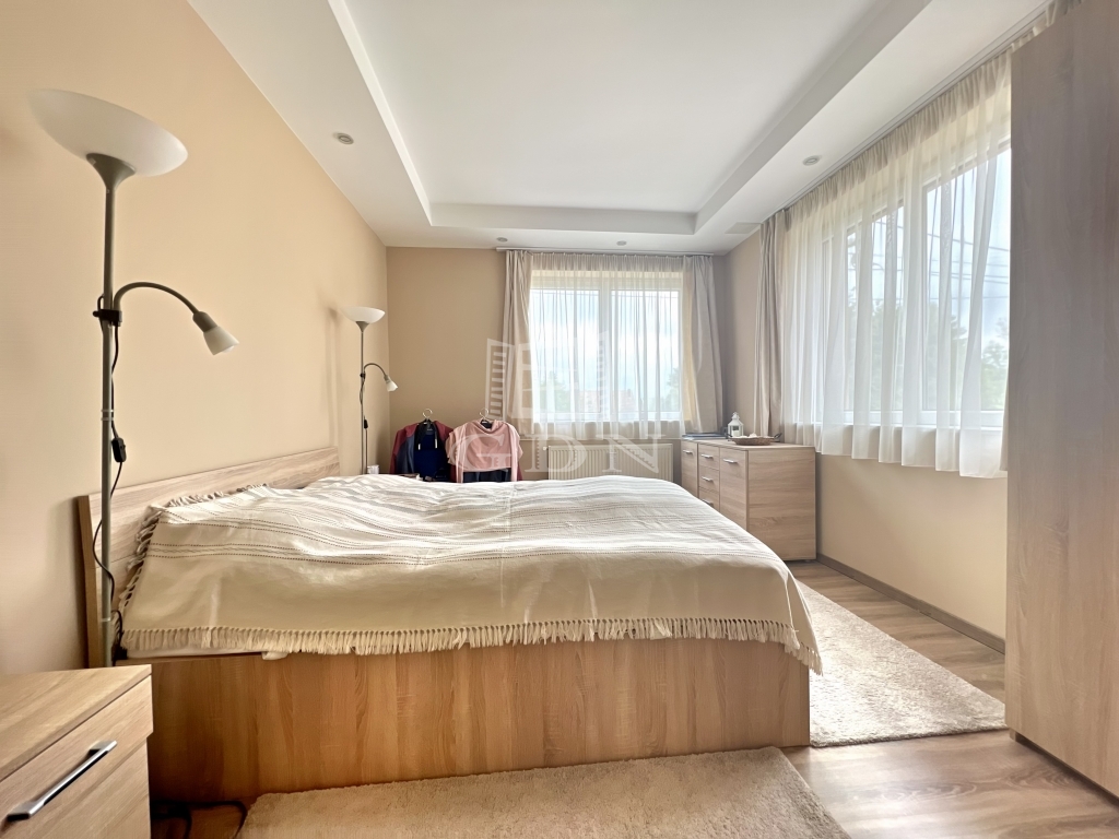 A ház elrendezése kifejezetten jól átgondolt. A földszinten tágas nappali, étkezős konyha, kamra, fürdőszoba és háztartási helyiség kapott helyet, míg az emeleten több hálószoba, külön fürdő és gardrób szolgálja a kényelmes mindennapokat. A belső terek arányosak, világosak, hosszú távon is jól élhetők – akár nagyobb család, akár több generáció számára is.
