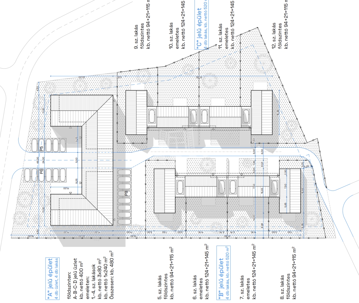 A lakások alapterülete: nettó 80 nm.