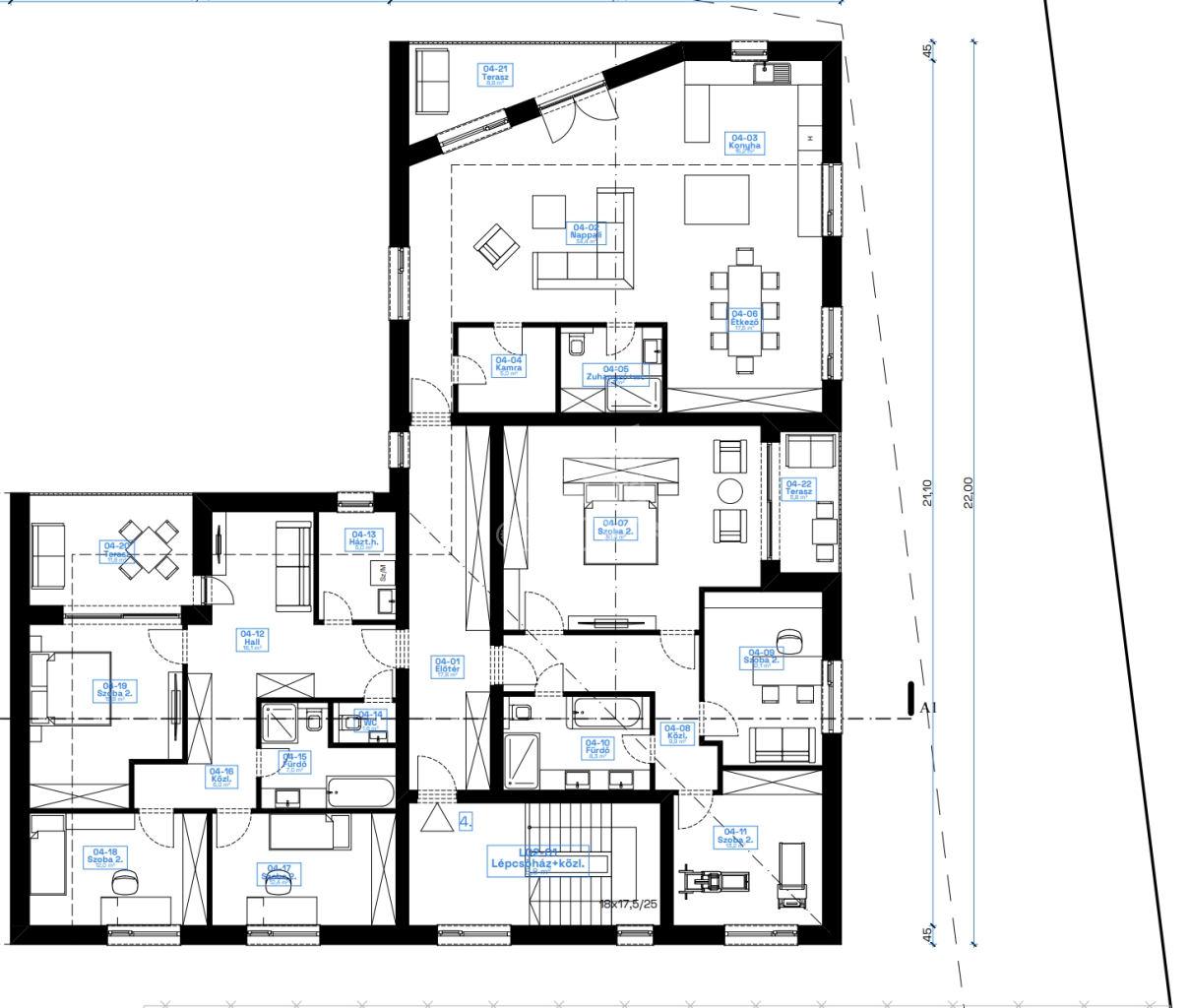 -Több lakás kialakítására alkalmas elrendezés,