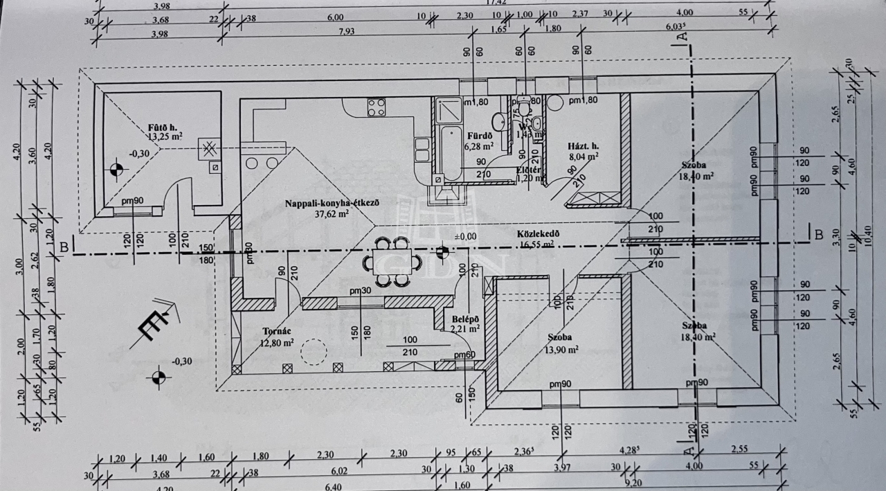 - Földszint: amerikai konyhás nappali, 3 hálószoba, mosókonyha, külön WC, fürdőszoba káddal