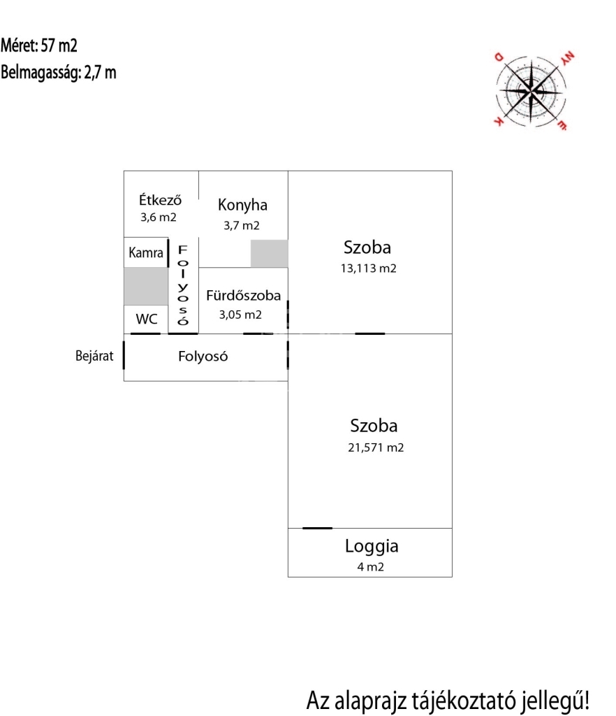 Az 57 m2-es lakás a 2. emeleten helyezkedik el, délnyugati fekvéssel.