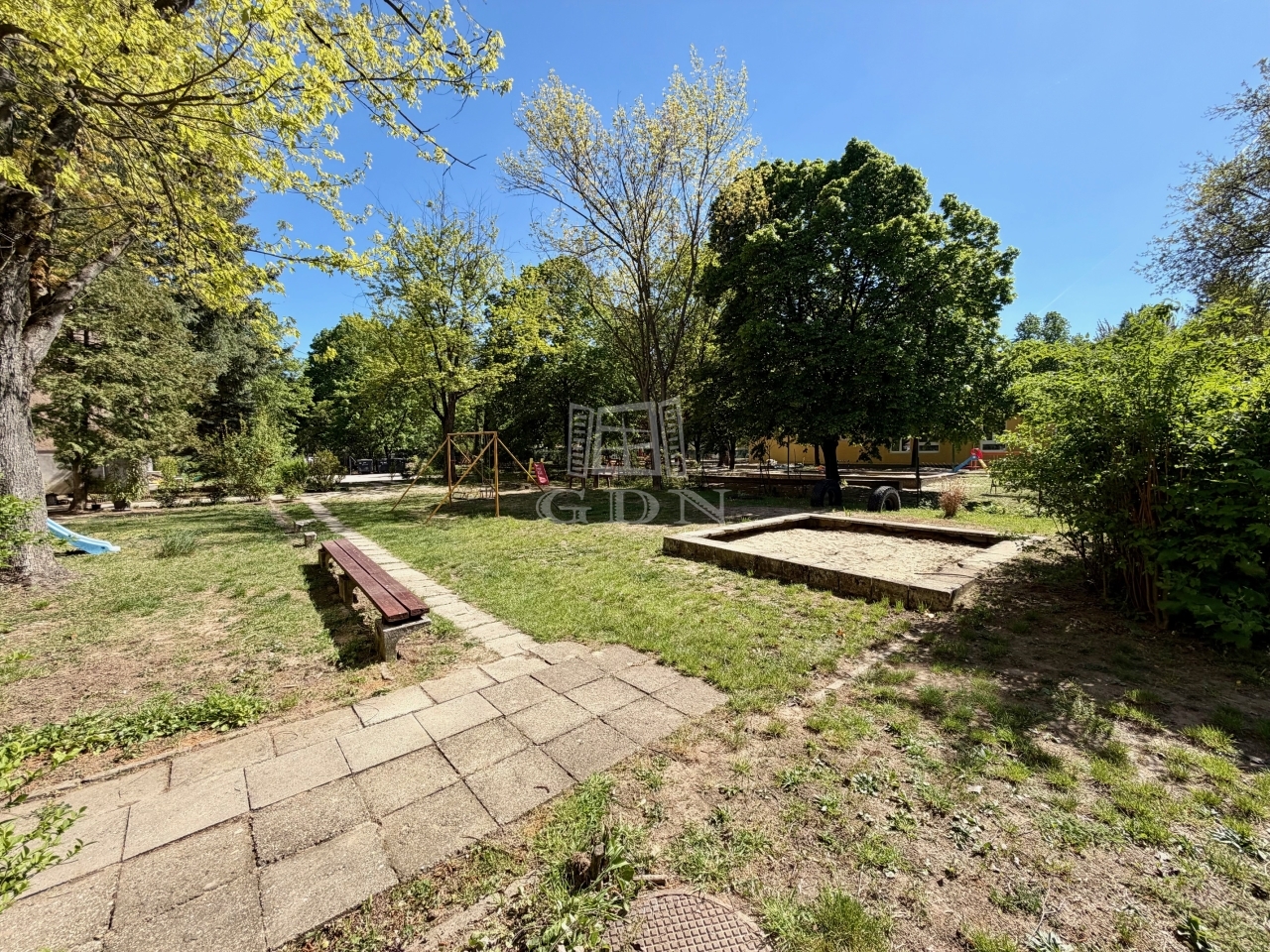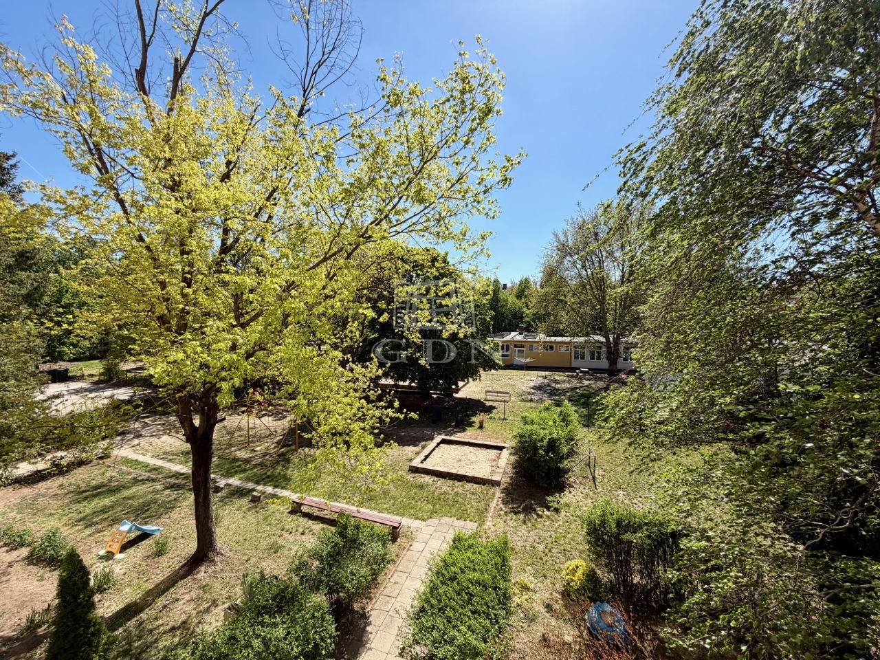 A társasház mögött, saját elzárt terület található, parkosítva, kis játszótérrel kialakítva, gyerekeseknek tökéletes választás.