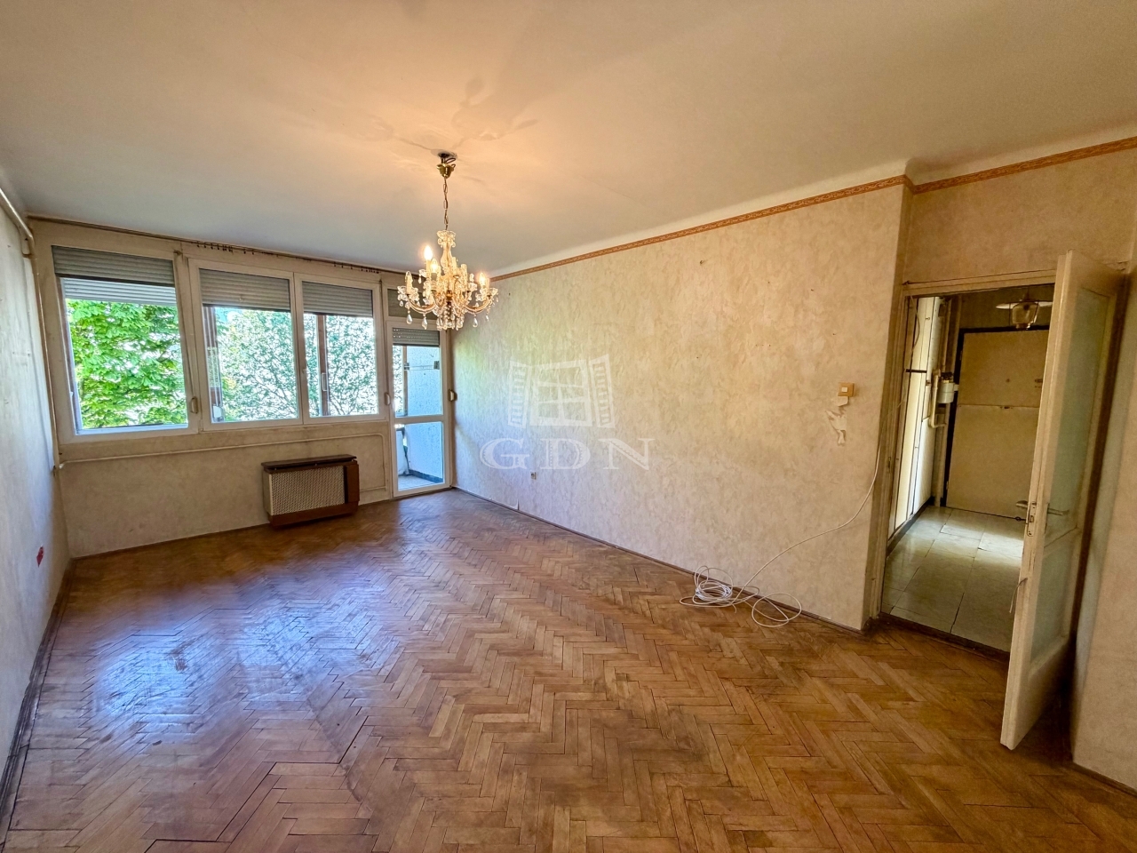 A lakás nagy része az eredeti, felújítandó állapotban van.